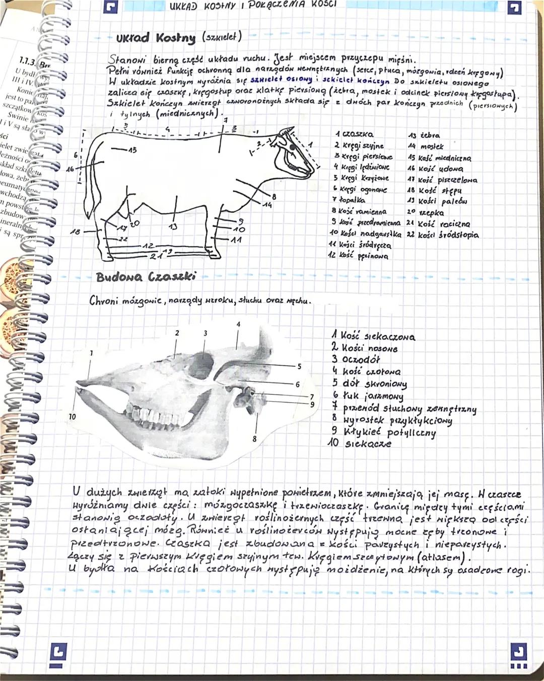 Definicja: Układ kostny (szkielet) to zespół kości i chrząstek tworzących wewnętrzne rusztowanie ciała zwierzęcia.