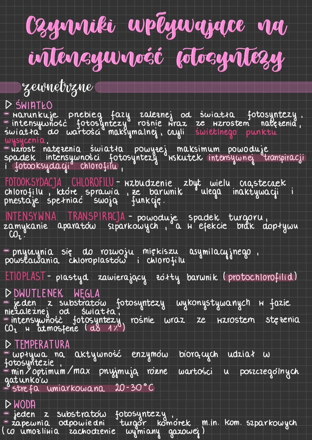 Czynniki zewnętrzne wpływające na intensywność fotosyntezy