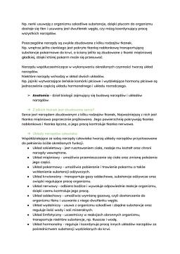 W Twoim ciele działa dziewięć głównych układów narządów: szkieletowy (rusztowanie), mięśniowy (ruch), pokarmowy (trawienie), krwionośny (transport), nerwowy (kontrola), oddechowy (wymiana gazów), wydalniczy (usuwanie toksyn), limfatyczny (obrona) i hormonalny (regulacja).