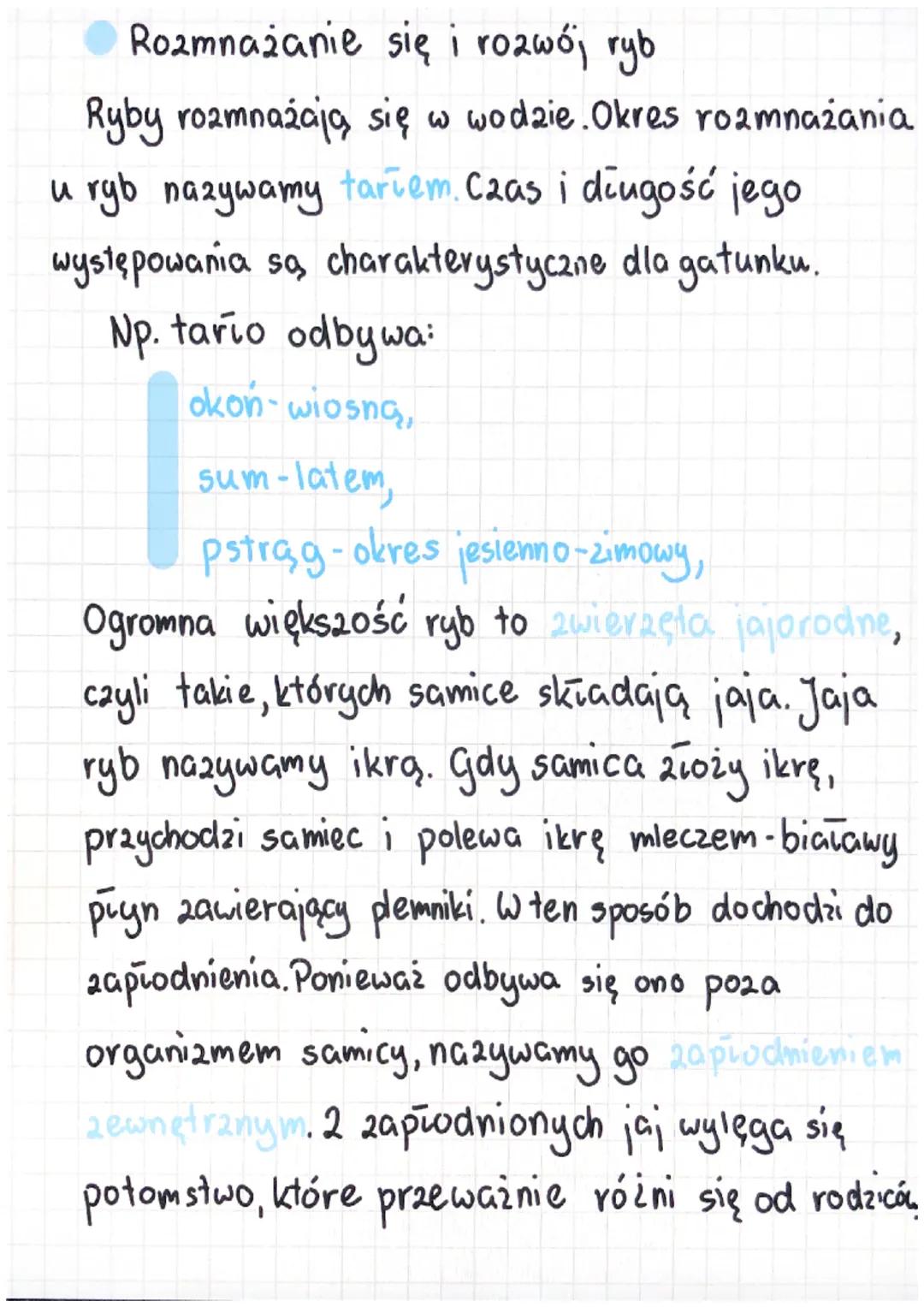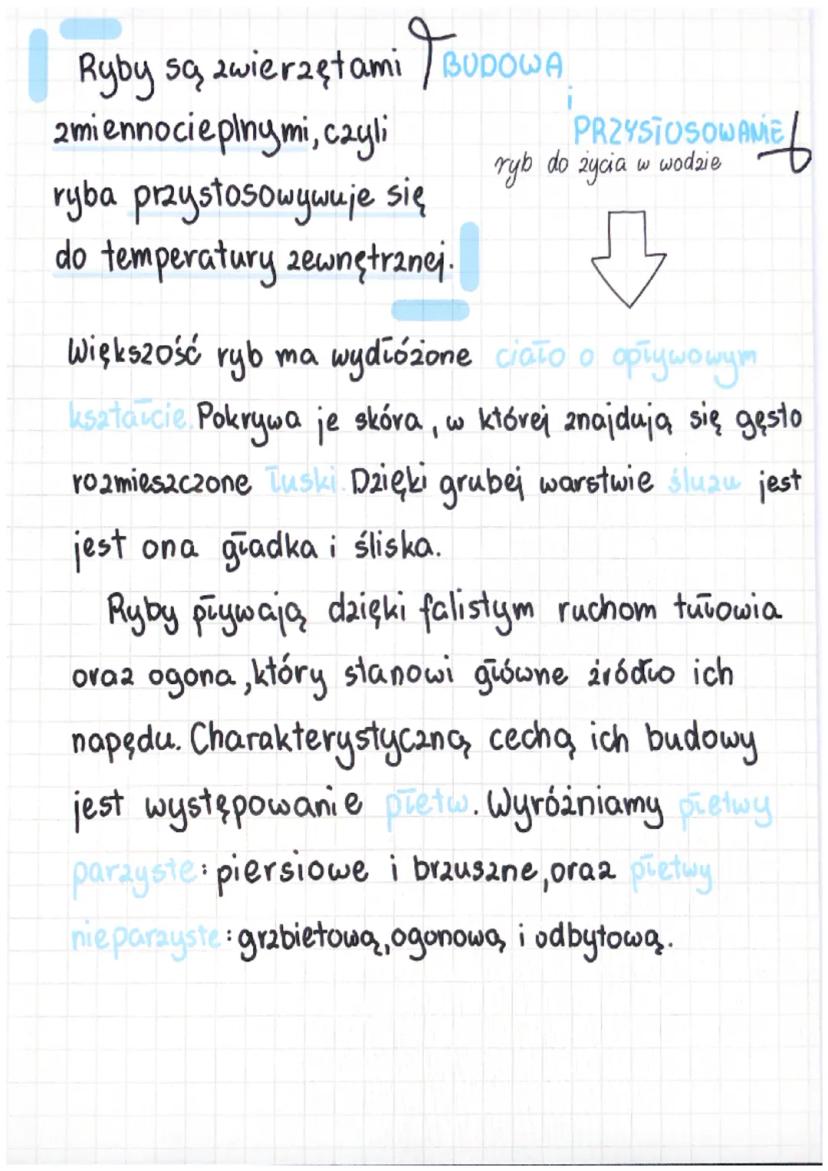 Zgłębiaj temat ryb jako kręgowców zmiennocieplnych. Dowiedz się o ich budowie, sposobach oddychania, oraz procesie zapłodnienia zewnętrznego. Notatka zawiera kluczowe informacje o środowisku życia ryb, ich adaptacjach oraz znaczeniu w ekosystemie. Idealna dla uczniów klasy 6.