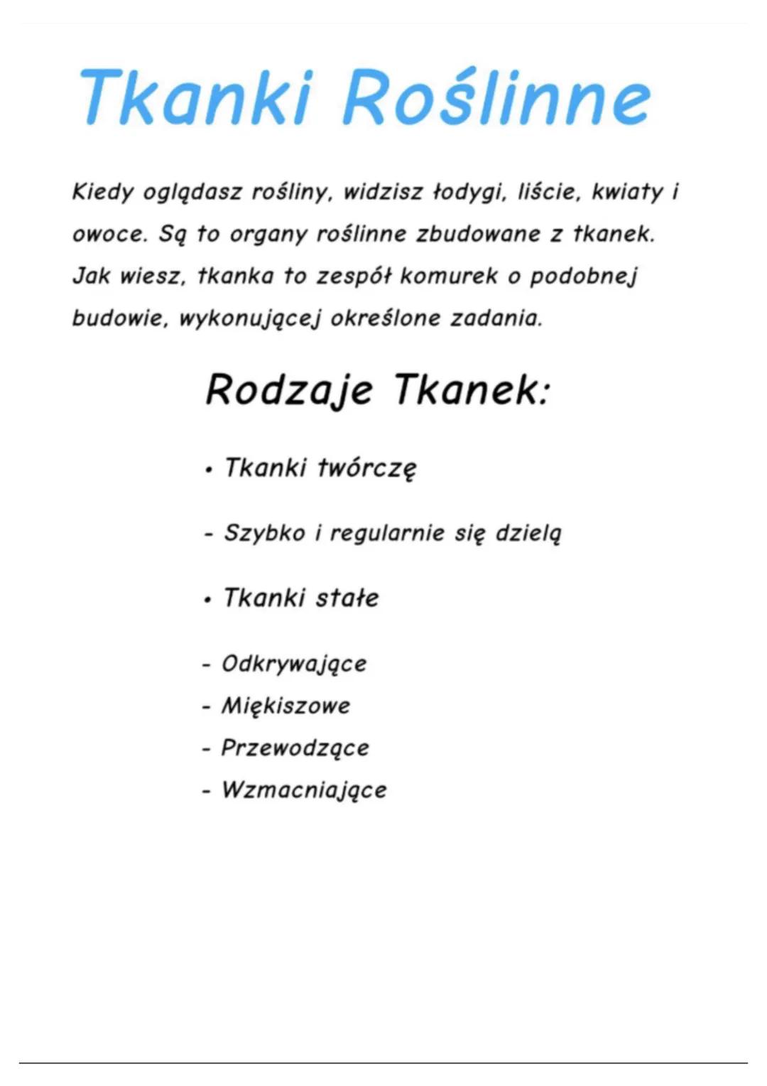 Zgłębiaj różnorodność tkanek roślinnych, ich struktury i funkcje. Dowiedz się o tkankach okrywających, wzmacniających, przewodzących oraz merystematycznych. Idealne dla studentów biologii i botaniki. Typ: Podsumowanie.