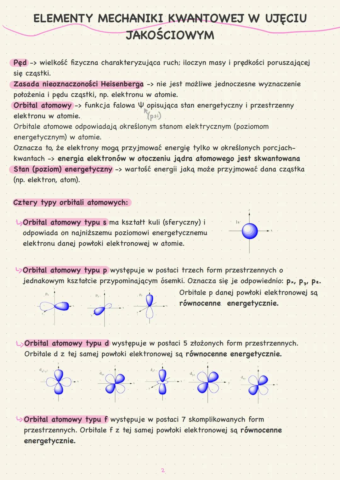 Zrozumienie kluczowych koncepcji mechaniki kwantowej, w tym liczb kwantowych, orbitali atomowych oraz zasady nieoznaczoności Heisenberga. Materiał obejmuje szczegółowe omówienie typów orbitali (s, p, d, f) oraz zakazu Pauliego. Idealne dla uczniów LO na poziomie rozszerzonym.