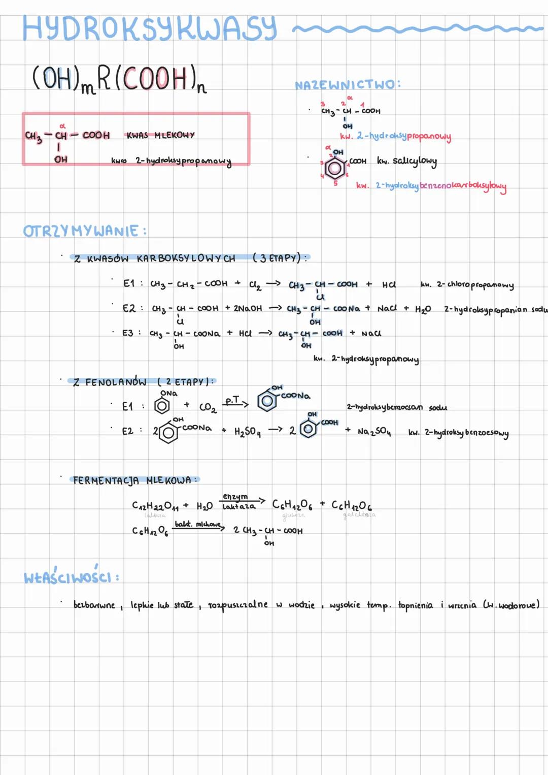 The naming of hydroksykwasy follows specific rules based on the position of the hydroxyl group relative to the carboxyl group. For example: