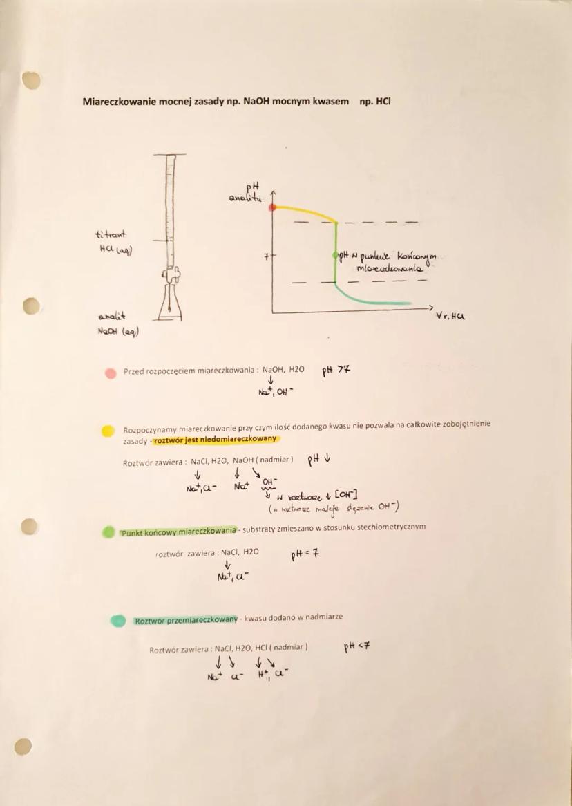 Jeśli dodamy jeszcze więcej zasady, roztwór stanie się przemiareczkowany – będzie zawierał NaCl, H₂O i nadmiar NaOH, a jego pH przekroczy 7.