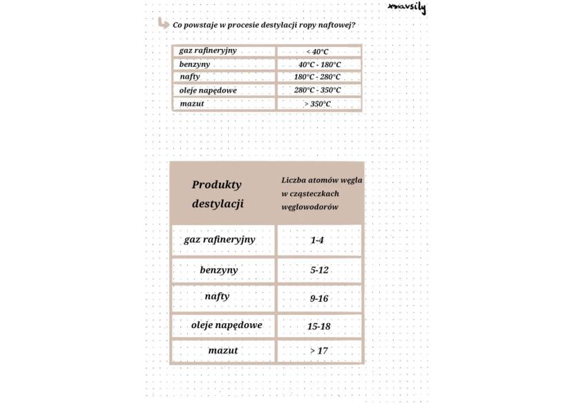 Krótka notatka o węglowodorach, a w niej: rodzaje związków chemicznych, co to węglowodany, naturalne źródła węglowodorów, co to gaz ziemny, co to ropa naftowa, co to węgle kopalne i proces destylacji ropy naftowej w tablekach.