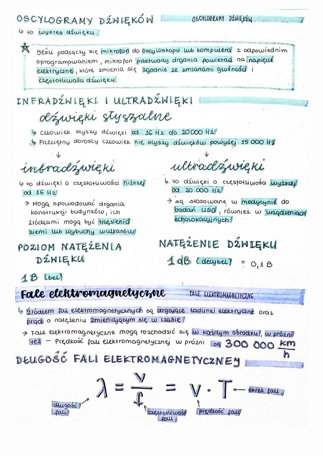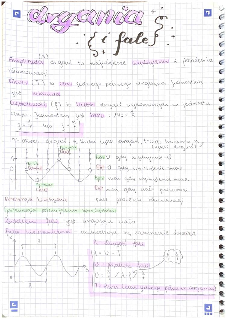 Drgania i fale cz.2 notatka fizyka klasa 8 Notatka zawiera tematy: -fale mechaniczne, fale dźwiękowe, wysokość i głośność dźwięku, fale elektromagnetyczne