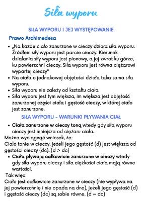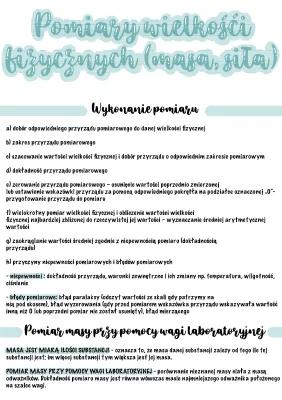 Strona ta przedstawia kluczowe definicje i wzory związane z masą, siłą ciężkości i gęstością, które są fundamentalnymi pojęciami w fizyce. Te wielkości fizyczne są niezbędne do zrozumienia właściwości materii i jej zachowania w różnych warunkach.