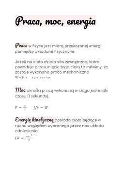 Zbiór kluczowych wzorów dotyczących ruchu obrotowego brył sztywnych oraz energii kinetycznej. Obejmuje moment bezwładności, twierdzenie Steinera oraz podstawowe równania dla różnych kształtów brył. Idealne dla studentów fizyki przygotowujących się do egzaminów.