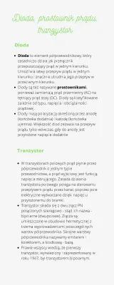 Zrozumienie działania diod i tranzystorów półprzewodnikowych. Dowiedz się, jak diody prostują prąd AC na DC oraz jak tranzystory kontrolują przepływ prądu. Idealne dla studentów elektroniki i inżynierii. Typ: Podsumowanie.