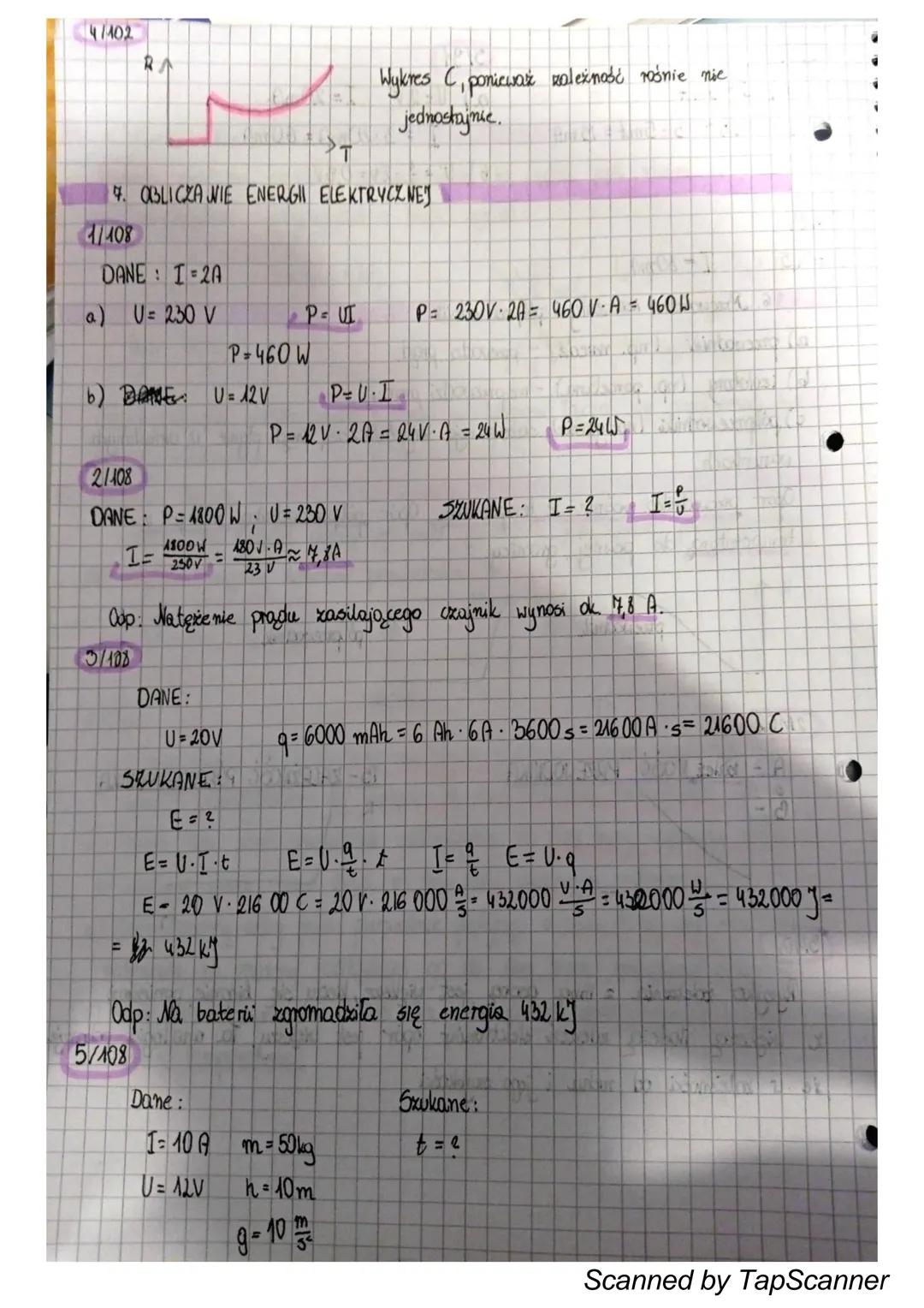 Ta sekcja koncentruje się na praktycznych obliczeniach związanych z energią elektryczną. Przedstawiono kilka przykładów obliczania mocy, natężenia prądu i energii dla różnych urządzeń elektrycznych.