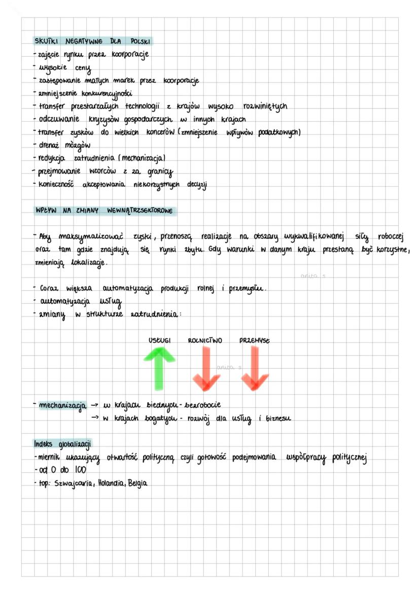 Niestety, istnieją też negatywne konsekwencje. Międzynarodowe korporacje zajmują polski rynek, często zastępując małe lokalne marki. Odczuwamy kryzysy gospodarcze z innych krajów, a zyski są transferowane do wielkich koncernów, co zmniejsza wpływy podatkowe. Problemem jest też drenaż mózgów - wyjazd wykształconych specjalistów.