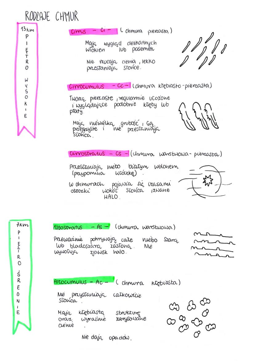 Rodzaje chmur atmosferycznych różnią się wyglądem, wysokością występowania i właściwościami: