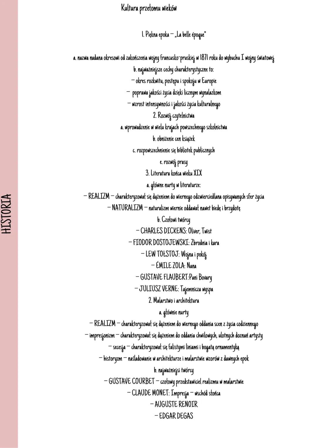 Literatura końca XIX wieku reprezentowały głównie dwa nurty: realizm (wierne odzwierciedlenie życia) i naturalizm (pokazywanie także biedy i brzydoty). Wielcy pisarze jak Charles Dickens, Fiodor Dostojewski, Lew Tołstoj czy Juliusz Verne tworzyli dzieła, które czytamy do dziś.