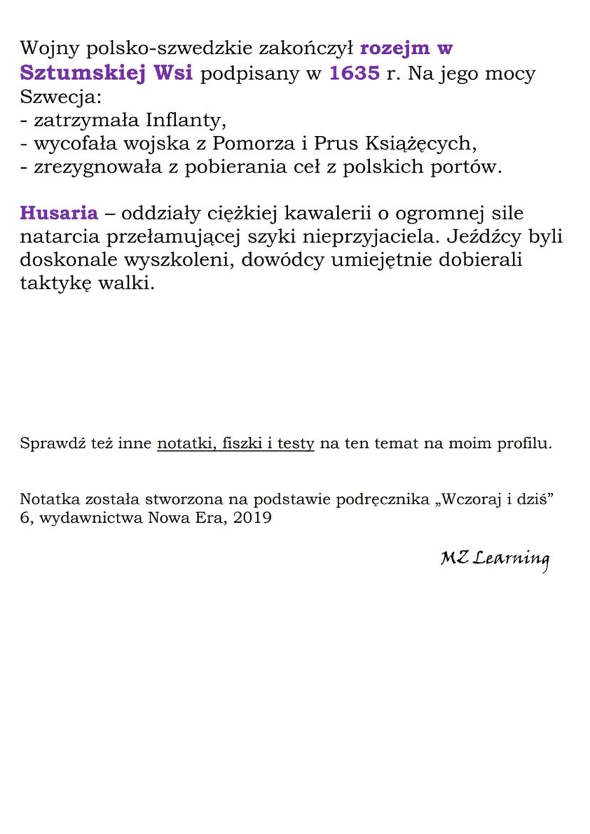 Wojny polsko-szwedzkie w XVII wieku zakończyły się rozejmem w Sztumskiej Wsi, podpisanym w 1635 roku. Postanowienia tego rozejmu obejmowały: