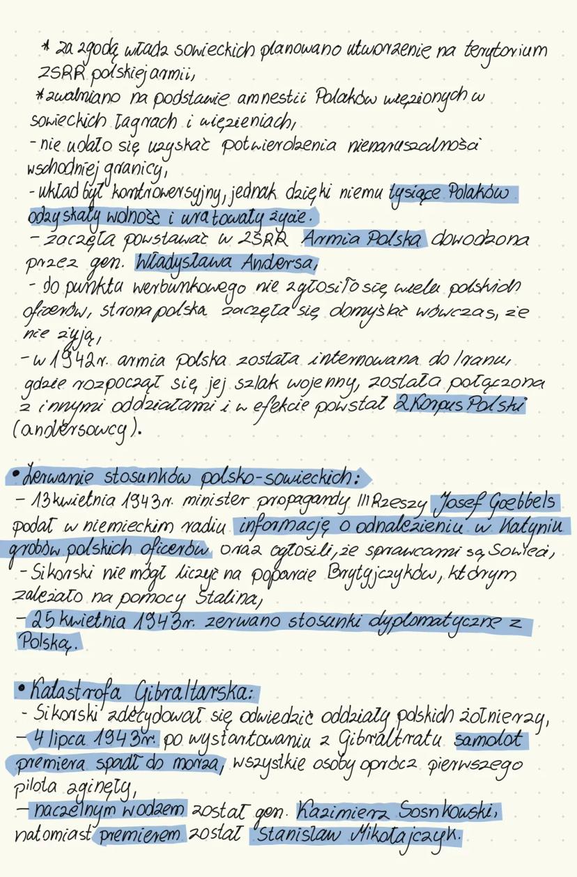 Układ Sikorski-Majski postanowienia obejmowały zgodę władz sowieckich na utworzenie na terytorium ZSRR polskiej armii oraz zwolnienie na podstawie amnestii Polaków więzionych w sowieckich łagrach i więzieniach. Mimo kontrowersji, układ ten umożliwił uratowanie życia tysiącom Polaków.