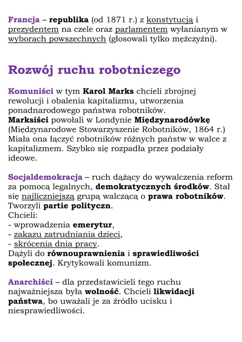 Nowe idee polityczne w XIX wieku obejmowały komunizm, socjaldemokrację i anarchizm. Komuniści, w tym Karol Marks, dążyli do zbrojnej rewolucji i obalenia kapitalizmu.