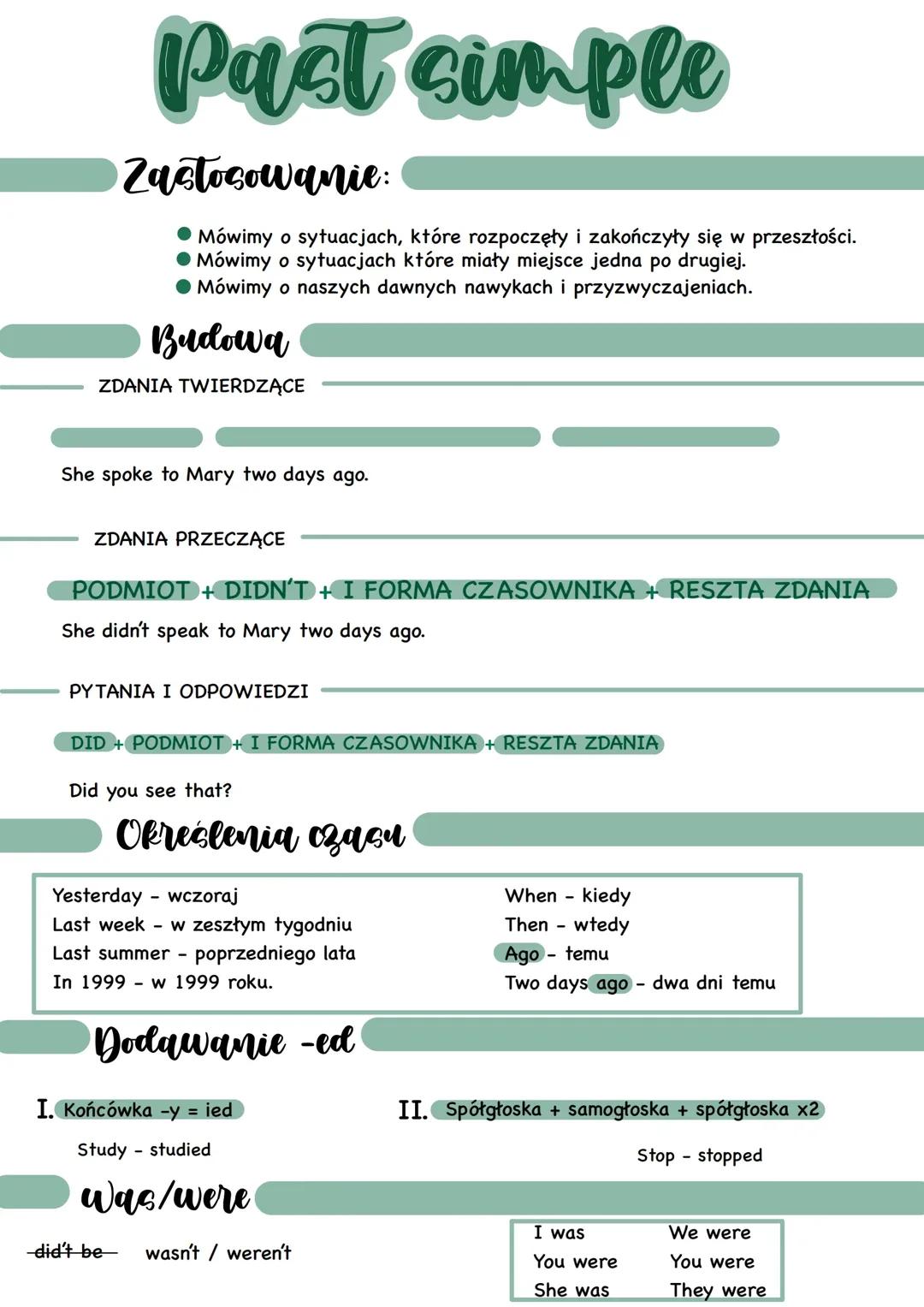 Omawiamy sytuacje, nawyki i przyzwyczajenia z przeszłości, włączając w to pytania, przeczenia i czasowniki regularne.