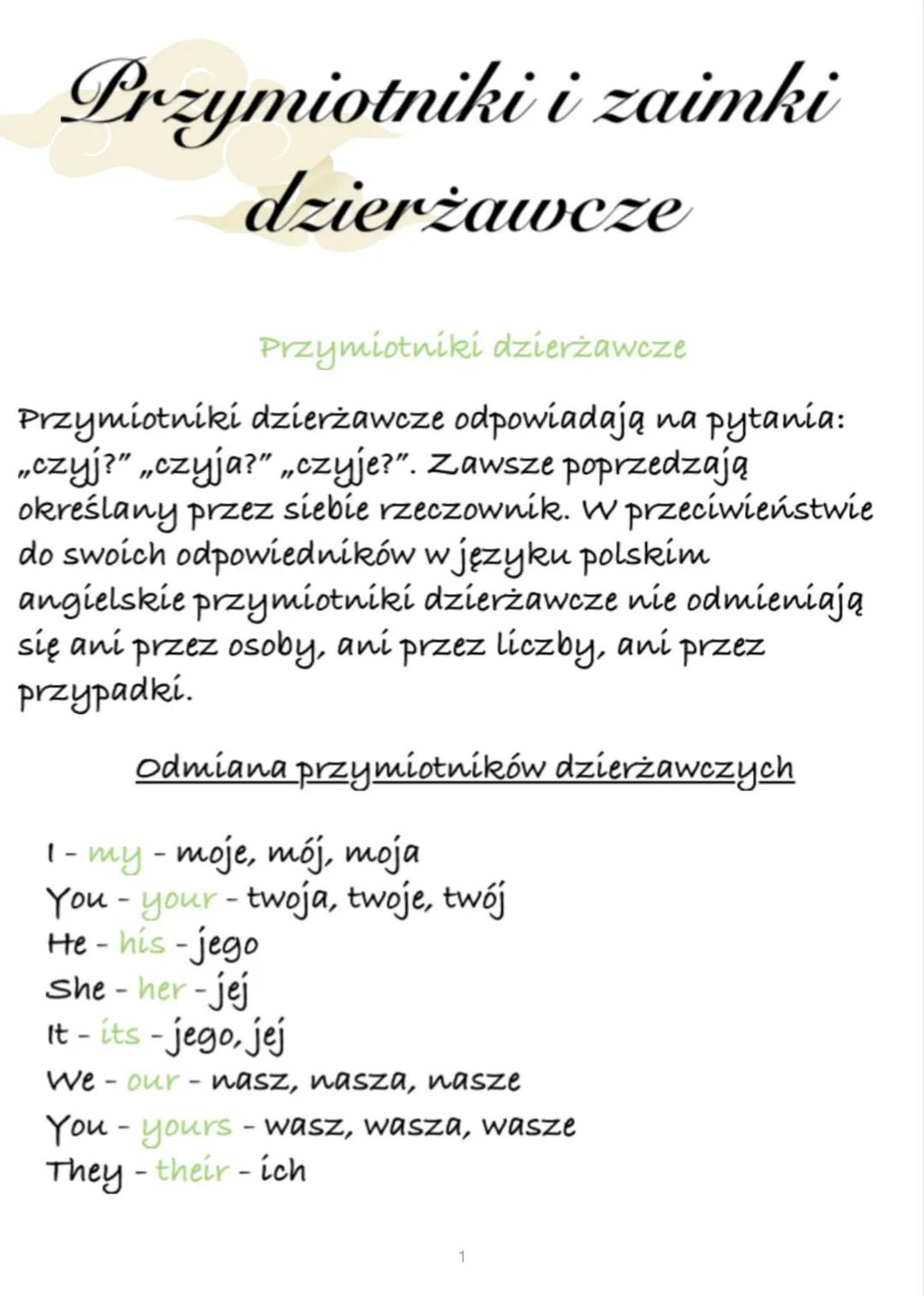 Notatka zaimki i przymiotniki dzierżawcze język angielski