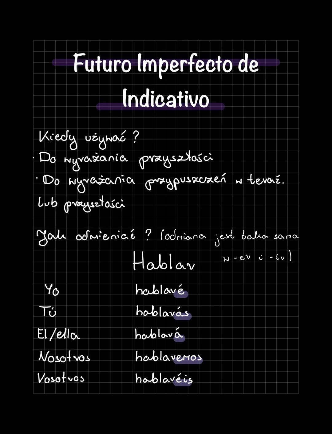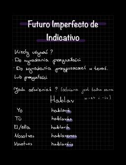 Futuro Imperfectoto czas przyszły w języku hiszpańskim używany do wyrażania przyszłości i przypuszczeń. Odmiana jest regularna dla... Pokaż więcej