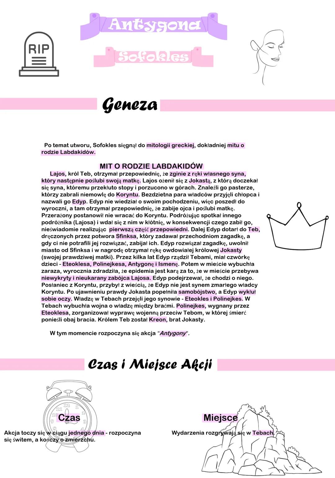 Analiza tragedii 'Antygona' Sofoklesa: geneza, czas i miejsce akcji, główni bohaterowie, konflikt tragiczny, motywy fatum i władzy. Odkryj pytania do powtórek oraz istotne zagadnienia dotyczące praw boskich i ludzkich. Idealne dla studentów literatury i teatru.