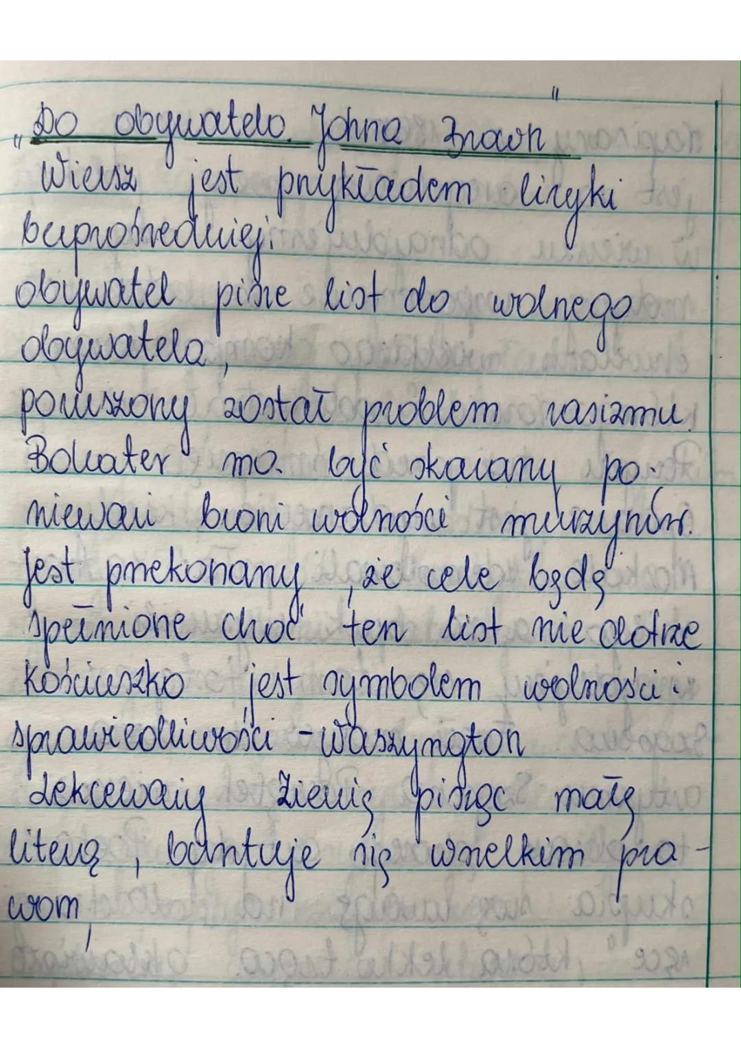 Do obywatela Johna Brown notatka powinna zawierać informację o przekonaniu autora, że cele walki o wolność zostaną osiągnięte, mimo że list może nie dotrzeć do adresata. To symboliczne wyrażenie wiary w siłę idei i nieuchronność postępu społecznego.