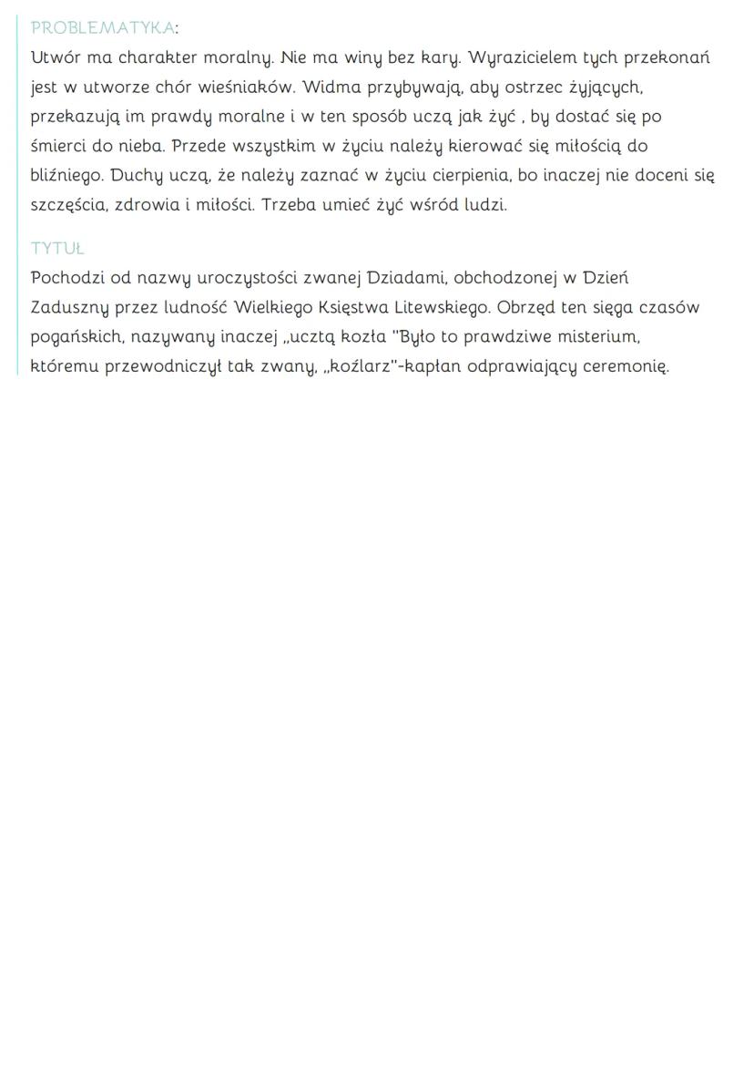 Highlight: Dziady cz 2 Problematyka krótka skupia się na nauce moralnego życia poprzez przykłady duchów.
