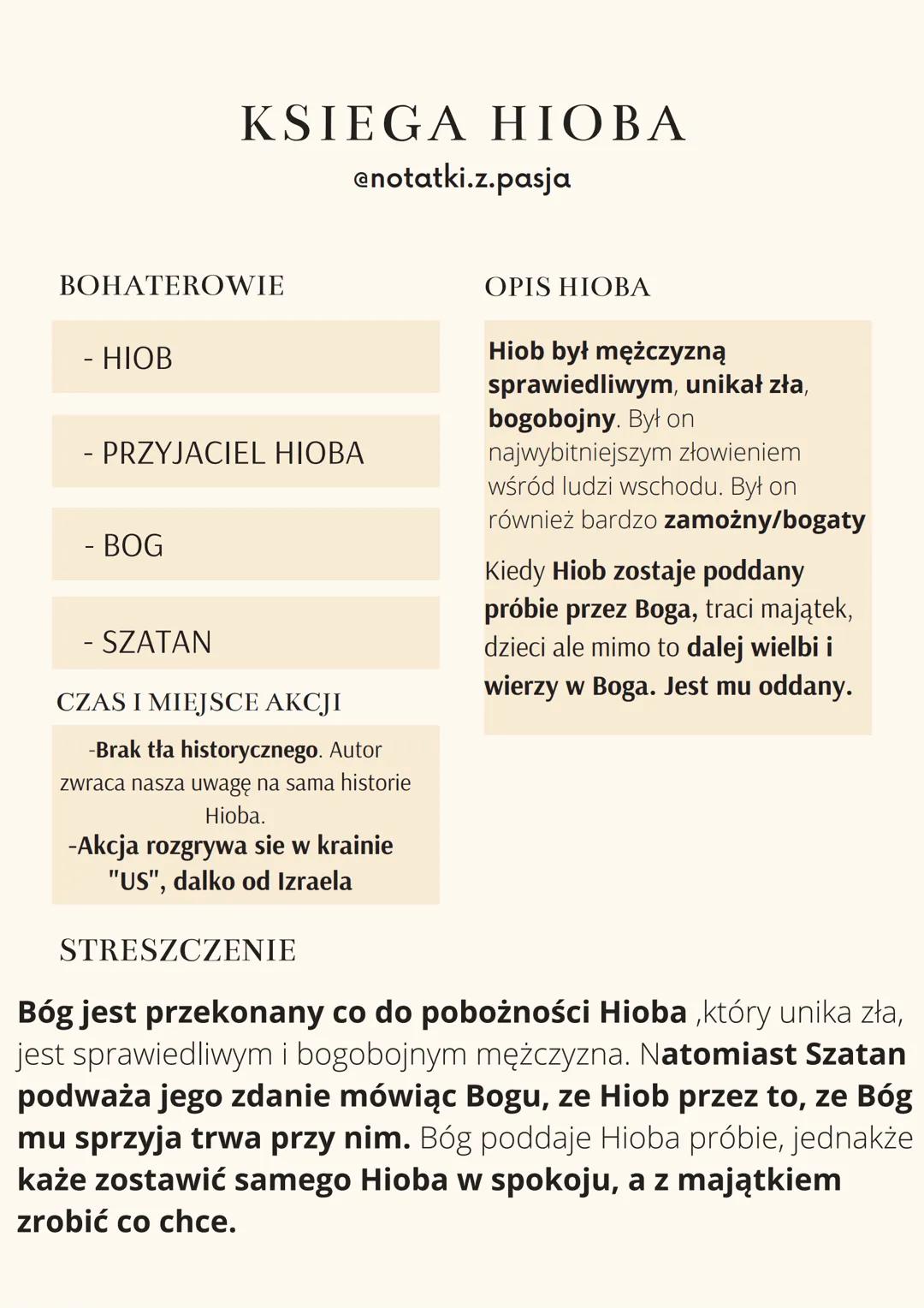 Example: Historia Hioba - opracowanie pokazuje, jak bohater, dotknięty cierpieniem, porównuje swój los do śmierci, co ilustruje głębię jego rozpaczy.