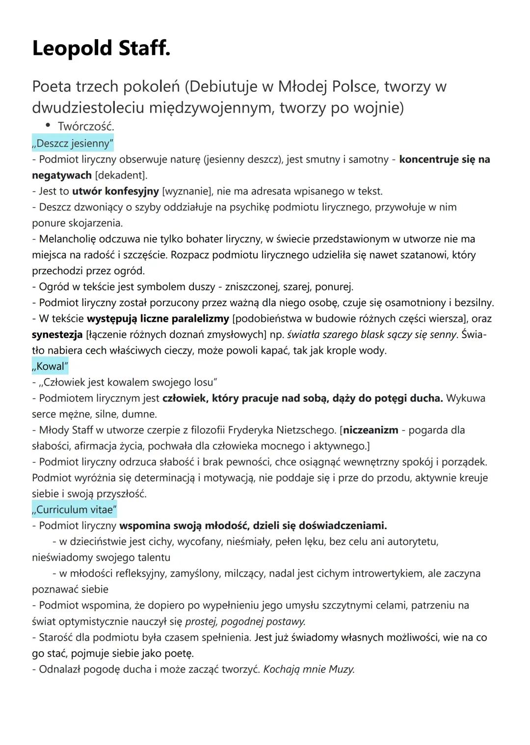 Analiza wiersza "Deszcz jesienny" Leopolda Staffa