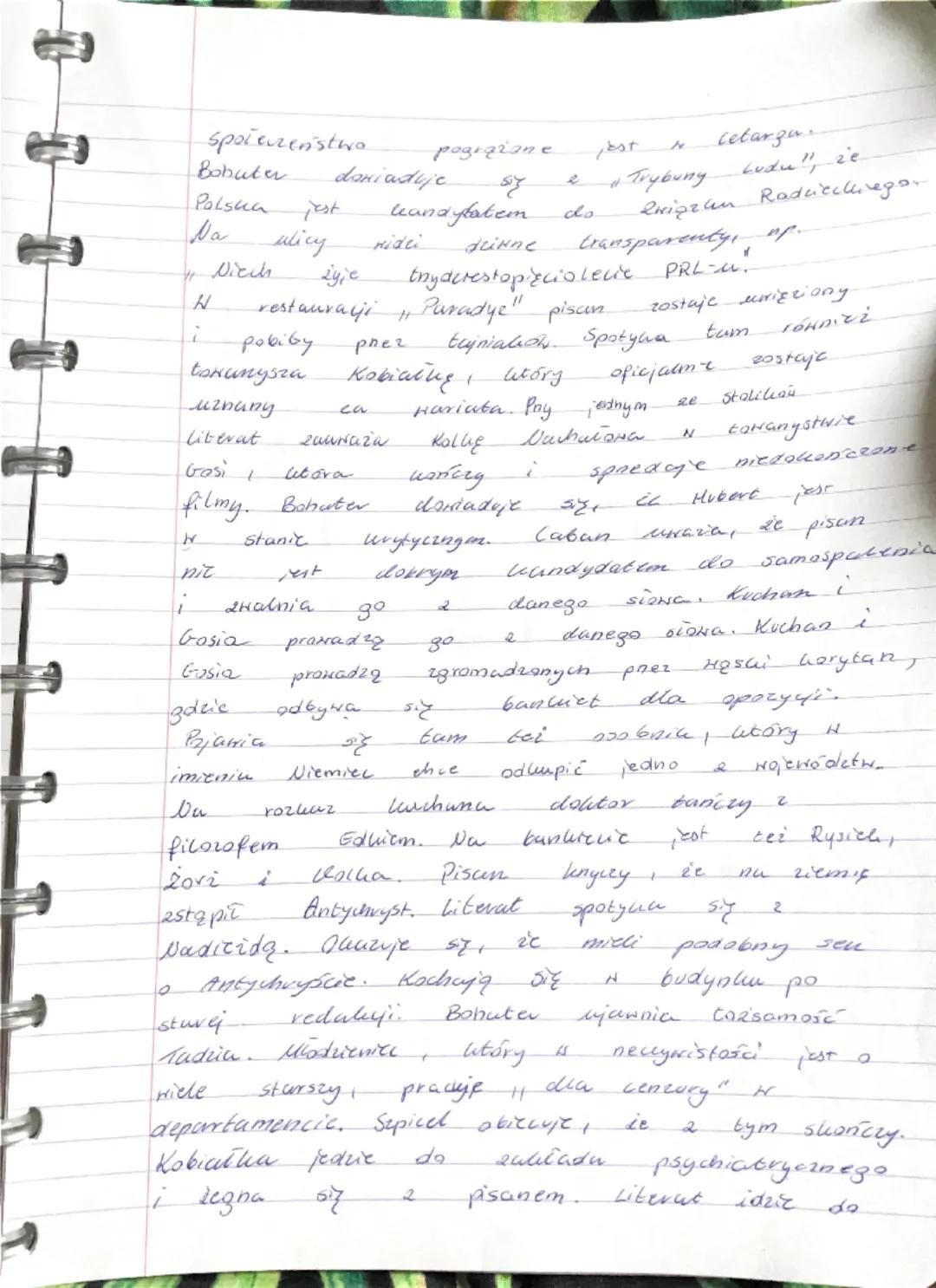 Przy ulicy Wiślanej 63 spotyka Sachera - dawnego cenzora z Biura Bezpieczeństwa. Na miejscu poznaje też Halinę (która ma mu ulżyć w temacie samospalenia), Nadieżdę - Rosjankę zakochaną w nim od pierwszego spojrzenia, oraz białobrodego starca paralityka.