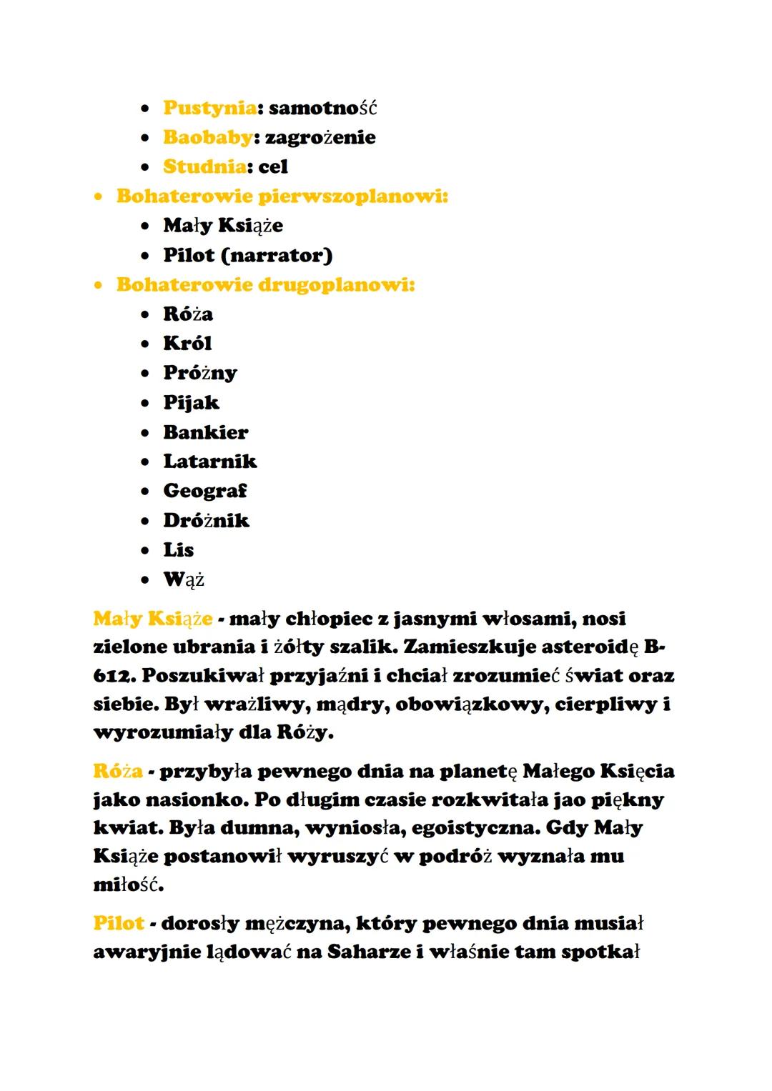 Odkryj kluczowe postacie i ich symbolikę w 'Małym Księciu' Antoine'a de Saint-Exupéry. Notatka zawiera szczegółowy opis bohaterów, ich relacji oraz znaczenie w kontekście fabuły. Idealna do nauki o literaturze i analizie postaci.