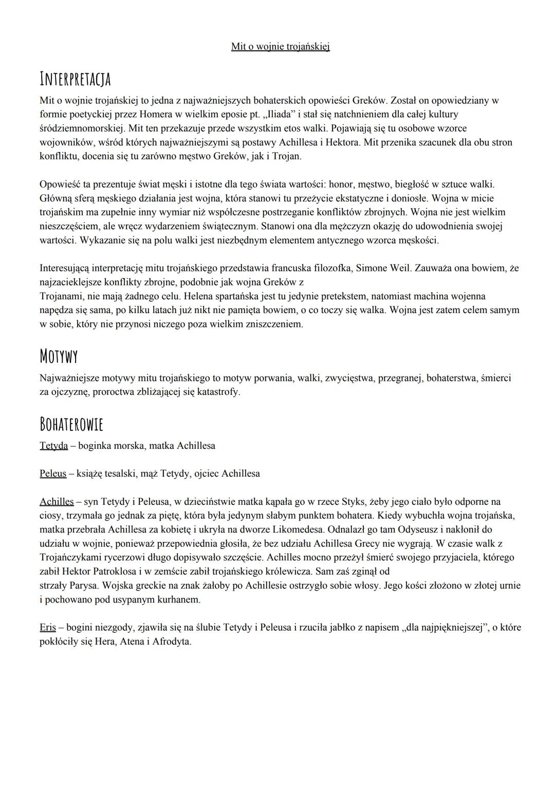 Strona 1: Interpretacja i główne motywy mitu o wojnie trojańskiej