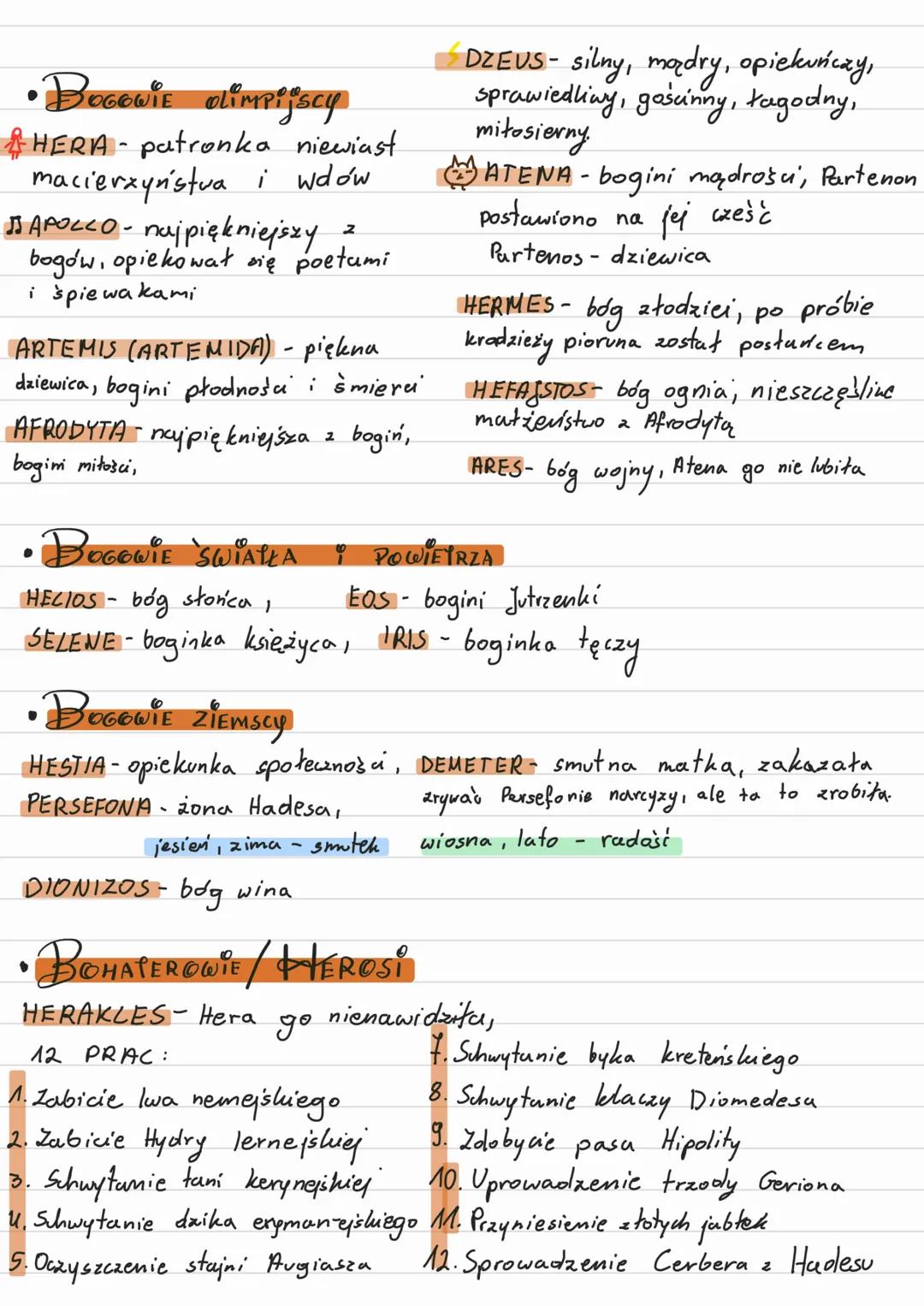 Mitologia grecka według Jana Parandowskiego - kompleksowe omówienie najważniejszych postaci i wydarzeń mitologicznych. Tekst przedstawia genealogię bogów olimpijskich, ich atrybuty oraz najsłynniejszych herosów, ze szczególnym uwzględnieniem 12 prac Heraklesa.