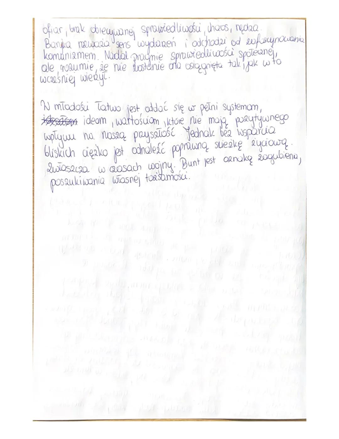 Autor podkreśla, że w młodości łatwo jest oddać się w pełni systemom, ideom i wartościom, które nie mają pozytywnego wpływu na naszą przyszłość. Jednocześnie zwraca uwagę na trudności w odnalezieniu właściwej ścieżki życiowej bez wsparcia bliskich, szczególnie w czasach wojny.