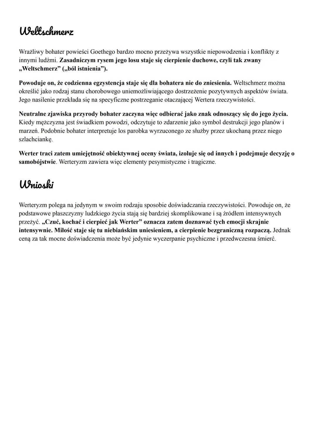 Weltschmerz to kluczowy element werteryzmu, definiujący sposób, w jaki bohater werteryczny doświadcza rzeczywistości. Jest to rodzaj cierpienia duchowego, które sprawia, że codzienna egzystencja staje się nie do zniesienia.