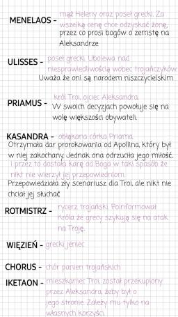 Odprawa posłów greckich - opracowanie tego planu wydarzeń pozwala zrozumieć, jak Kochanowski buduje napięcie dramatyczne, łącząc elementy polityczne, osobiste i profetyczne w spójną całość. Utwór ten stanowi nie tylko adaptację mitu trojańskiego, ale także głęboką refleksję nad mechanizmami władzy i odpowiedzialności politycznej, co czyni go ponadczasowym dziełem literatury polskiej.