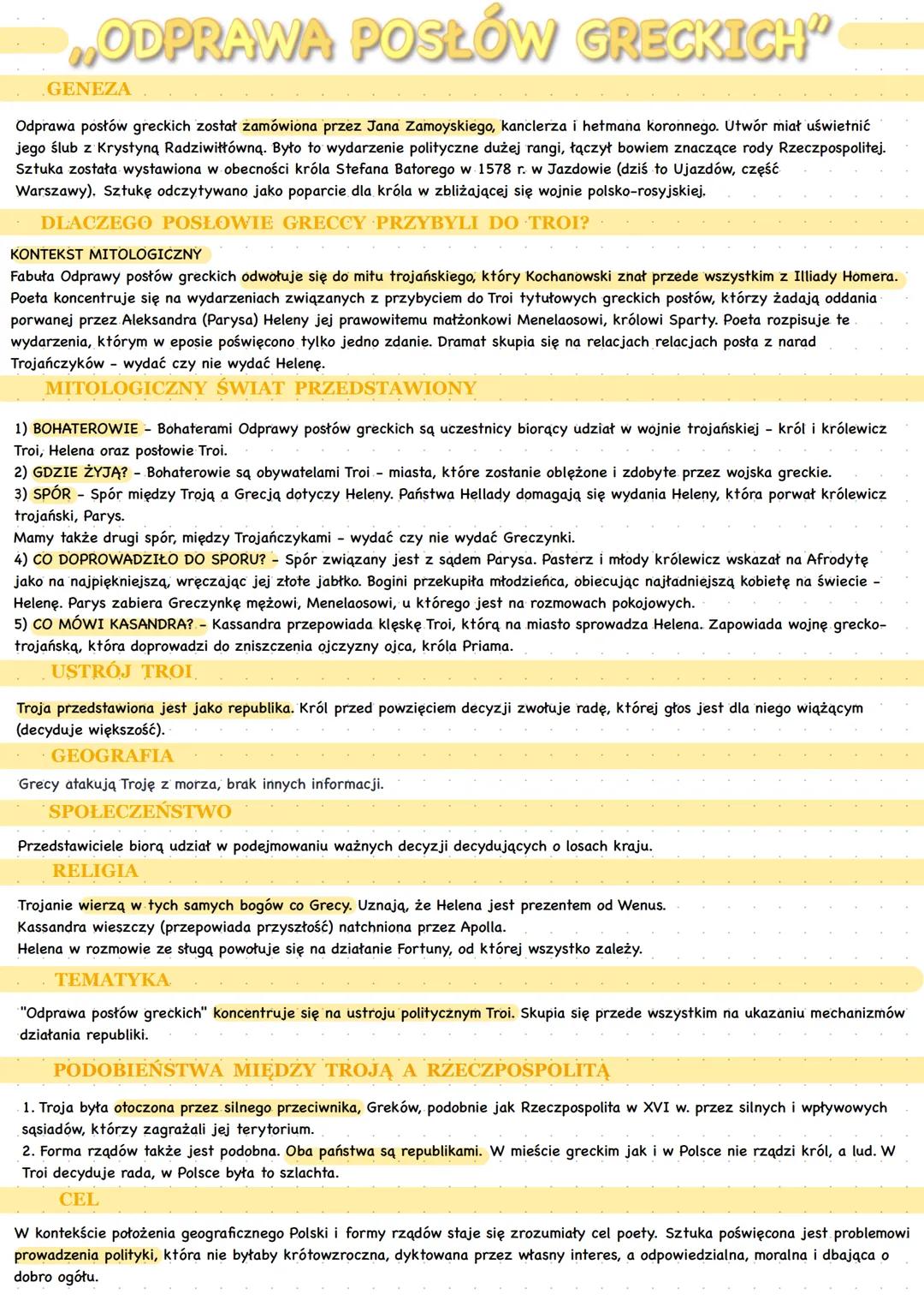 Highlight: Kochanowski wykorzystuje mit trojański do komentowania współczesnej mu sytuacji politycznej Polski.
