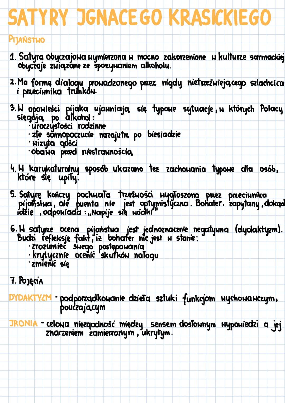 W "Pijaństwie" Krasicki mistrzowsko stosuje ironię - mówi o poważnym problemie społecznym w sposób pozornie lekki, pozwalając czytelnikowi samodzielnie dostrzec absurdalność opisywanych sytuacji.