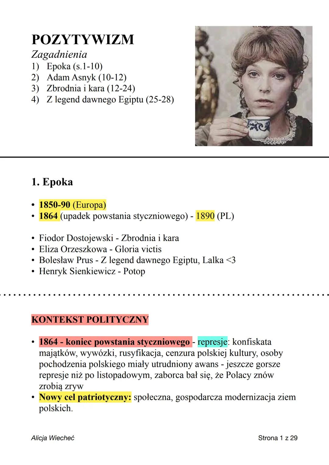 Pozytywizm to czas wielkich przemian społecznych. System feudalny ustępuje miejsca gospodarce kapitalistycznej, a zniesienie pańszczyzny zmienia całkowicie strukturę społeczną. Car Aleksander II wydał edykt uwłaszczeniowy dający chłopom na własność uprawianą ziemię - co miało ich odciągnąć od udziału w powstaniu.