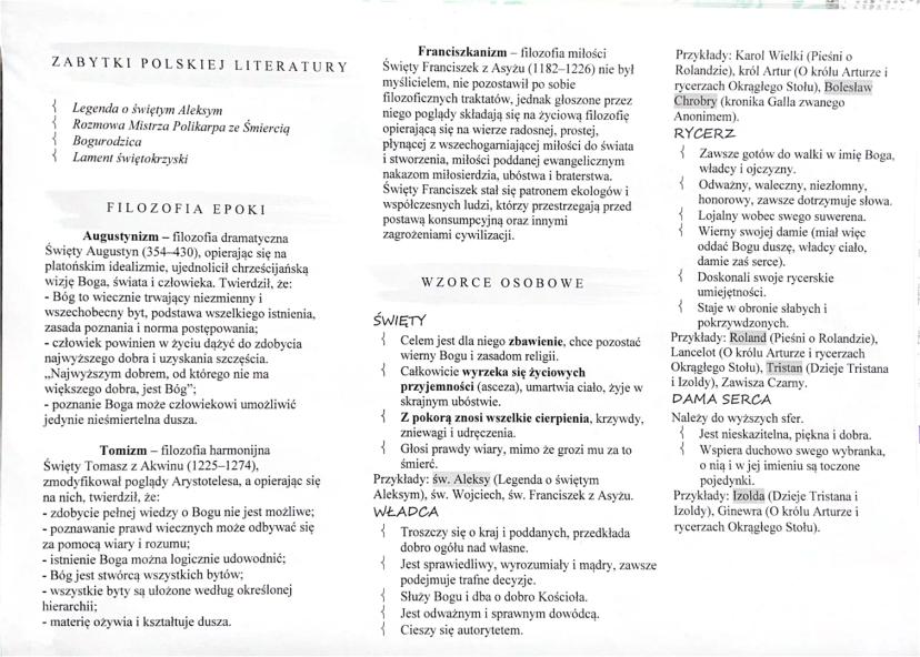 Literatura średniowiecza przykłady obejmują dzieła pisane głównie po łacinie, o charakterze anonimowym. Wykształciły się wówczas specyficzne wzorce osobowe: święty, rycerz, władca i dama serca.