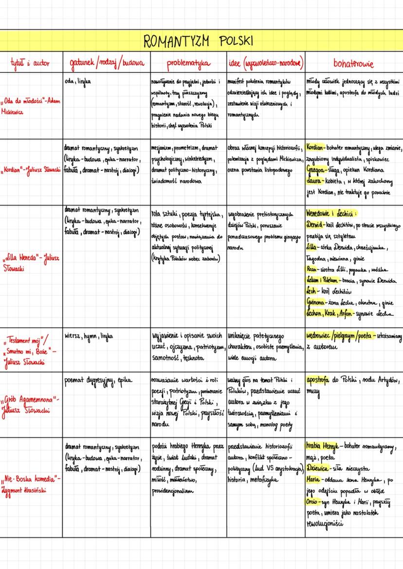 Strona ta kontynuuje przegląd kluczowych dzieł polskiego romantyzmu, skupiając się na twórczości Adama Mickiewicza, Juliusza Słowackiego i Zygmunta Krasińskiego. Te utwory romantyzmu są często omawiane podczas powtórzeń z romantyzmu przed maturą.