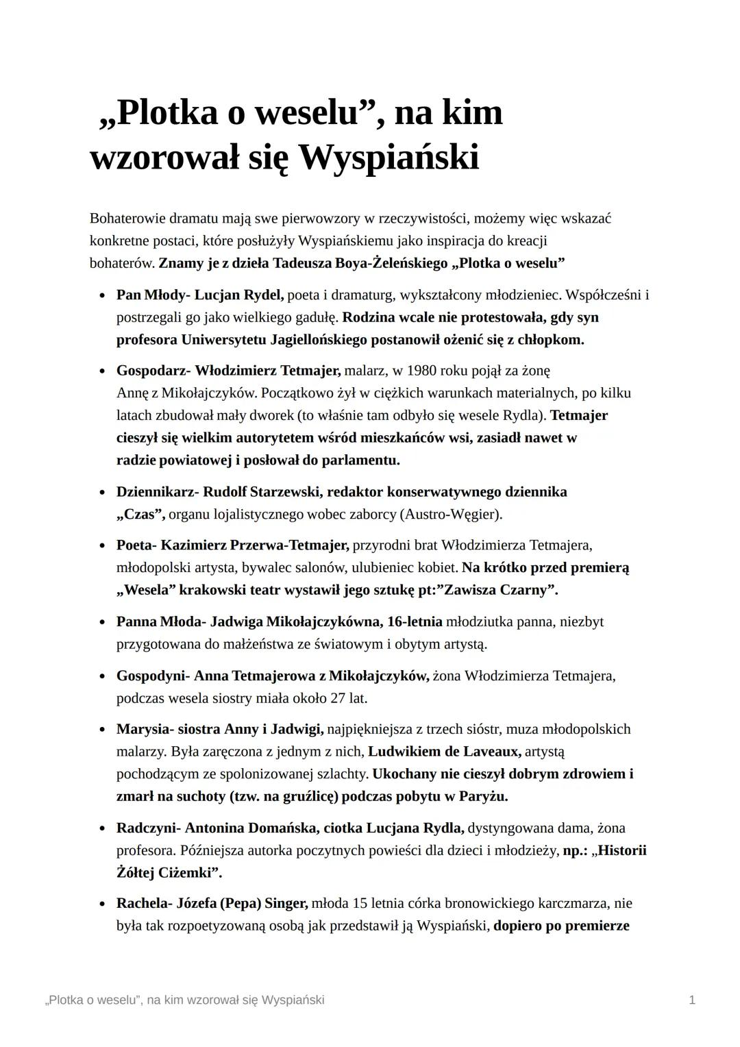 Wesele streszczenie tego fragmentu pokazuje, jak głęboko Wyspiański zanurzył się w realia krakowskiego życia artystycznego i wiejskiego, tworząc postacie, które mimo inspiracji rzeczywistymi osobami, stały się uniwersalnymi symbolami polskiego społeczeństwa końca XIX wieku.