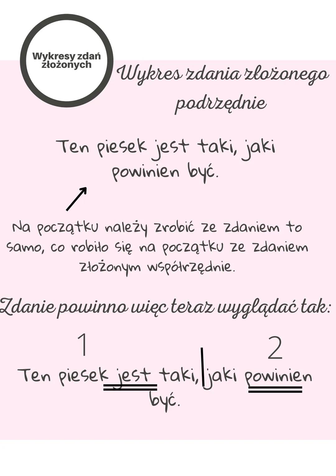 Highlight: Wykres zdania złożonego podrzędnie powinien przypominać schody, co wizualnie odzwierciedla hierarchiczną relację między częściami zdania.