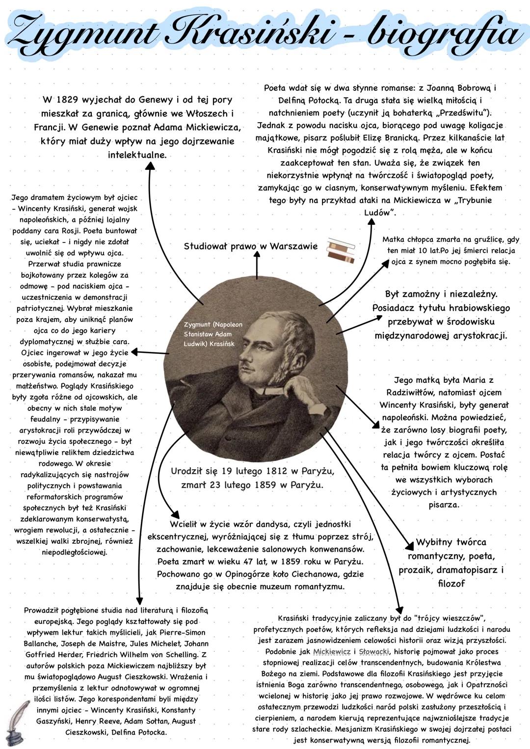 Podsumowując, Zygmunt Krasiński najważniejsze informacje to jego rola jako jednego z trzech wieszczów narodowych, skomplikowana relacja z ojcem, burzliwe życie miłosne oraz głęboka refleksja filozoficzna obecna w jego twórczości. Dramat romantyczny Zygmunta Krasińskiego to nie tylko jego dzieła literackie, ale także osobiste zmagania, które ukształtowały jego życie i twórczość.